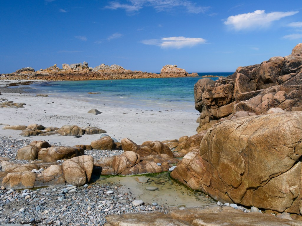 À environ 25 minutes de voiture des volets bleus le village de Plougrescant est très connu pour son site « Castel-Meur », la maison entre les rochers et son gouffre. Mais en réalité toute sa côte est un régal pour les yeux.