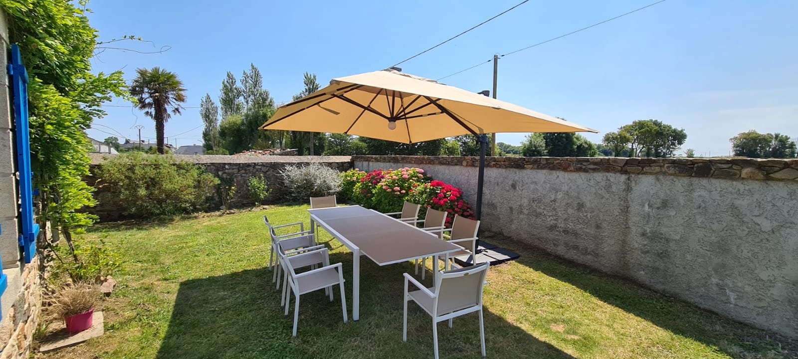 Devant la maison, une terrasse protégée par des murs dans lequel vous pourrez prendre vos repas à l’abri des vents dominants.