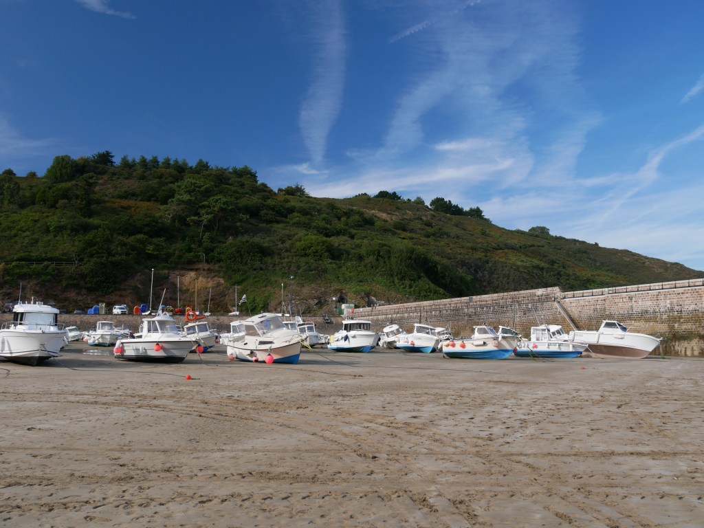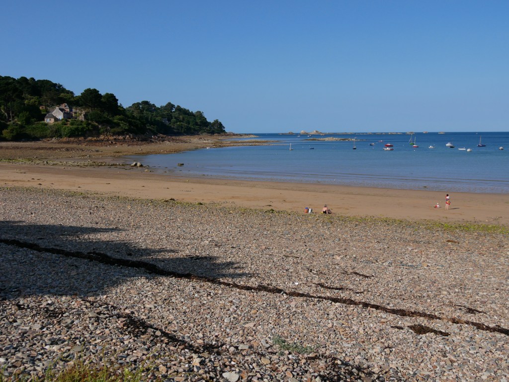 C’est la « grande » plage la plus proche de Landeby, elle est environ à 4 km de la maison. À l’abri de la pointe de L’Arcouest, on y aperçoit les belles villas et on est face à l’archipel de Bréhat. Très belle plage. À savoir, on est souvent installés sur les galets car le sable est mouillé voire sous l’eau.